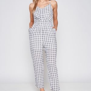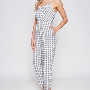 WHITE NAVY HEATHER V-NECK JUMPSUIT
