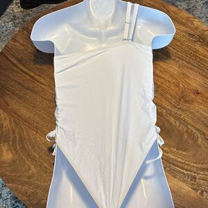 WHITE ONE SHOULDER DOUBLE STRAP ONE PIECE SWIMSUIT
