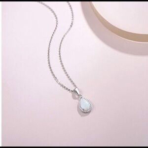 WHITE Opal Sterling Silver Necklace Cubic Zirconia