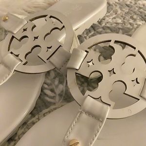 WHITE PATENT FASHION SLIP ON SANDAL