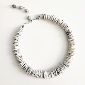 White marble magnesite turquoise discs ranging in size from 10-20mm in diameter gave us that raw natural look of puka shells.