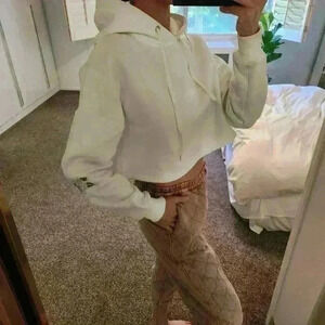 WHITE Paris Cropped Hoodie 100% Cotton Fleece White Rose Embroidery