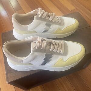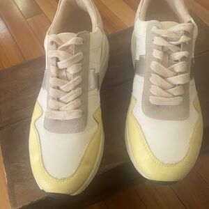 Stylish preowned sneakers with yellow and cream accents. Perfect for casual wear. Although in great condition missing 1 insole. Open to offers.
