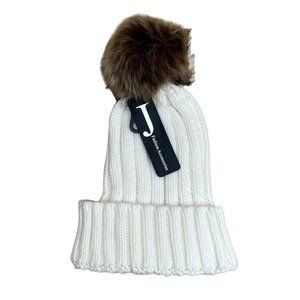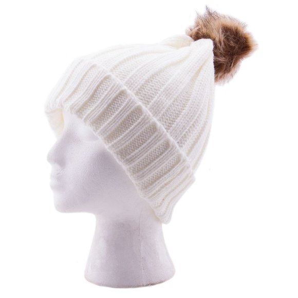Classic White Ribbed Beanie with detachable faux fur Pom-Pom - a must to everyone's wardrobe.