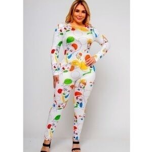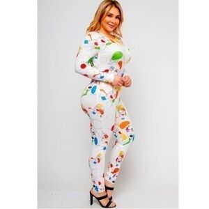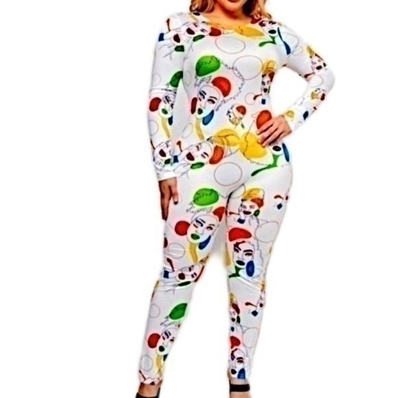 WHITE ROUND NECK LONG SLEEVE JUMPSUIT WITH FACE PRINT styles