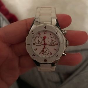 Perfect condition white rubber Michele watch. Comes with all original packaging including international warranty card (but that is expired used for authenticity) . Needs new battery but the watch is 10/10 condition.