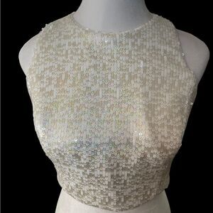 WHITE SEQUIN HALTER TOP BY DRESS THE POPULATION, XL
