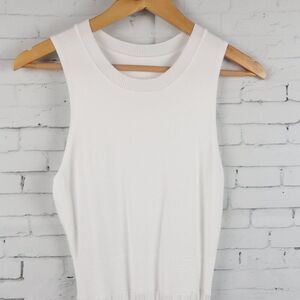 WHITE SLEEVELESS ROUND NECK FIT & FLARE MAXI SWEATER DRESS SIZE SMALL PRE OWNED NO FLAWS