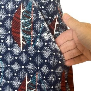Navy pattern with orange and aqua top stitching