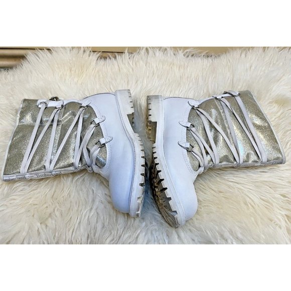 WHITE TIMBERLAND LEATHER WINTER BOOTS SILVER GLITTER SPARKLE SIZE 6.5