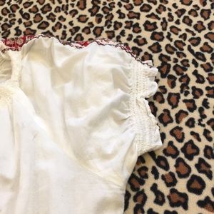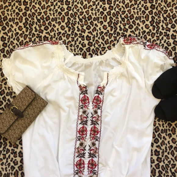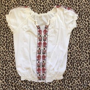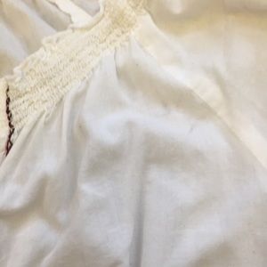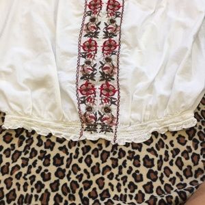 Peasant style white top, it is hand embroiled, beautifully made. Has some stains (probably from moving) only been worn 2 times, still in great condition. Meant to look vintage. Has elasticated bottom and arms. Size L