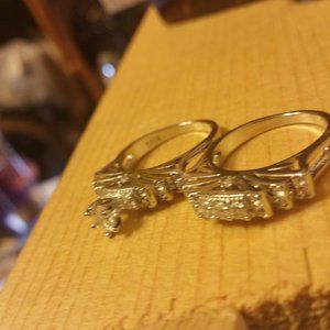 AWESOME FAUX WEDDING SET.....THIS PASSES THE SMELL TEST ..EVEN HAS A LITTLE TOPAZ STONE IN THE CROWN OF THE BOTH RINGS !!! INSIDE LOOK AT THE PHOTOS !!! THIS RING IS EVERYTHING ...