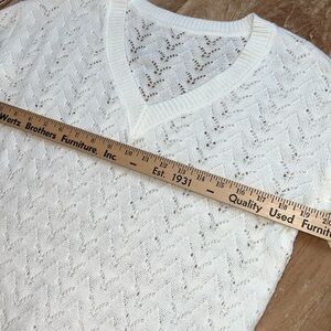 WHITE V-Neck Eyelet Sweater, Size S, NWOT