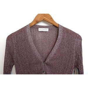 WHITE + WARREN Amethyst Shine Rib Knit V-Neck Cardigan Top Shopbop S NWT $285