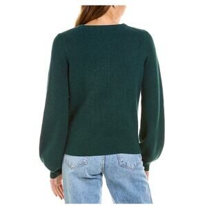 • Crewneck Silk-Blend Sweater in dark forest with ribbed knit, crewneck and slight puff sleeves