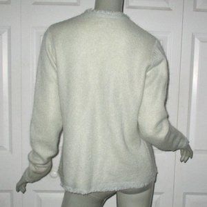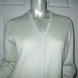 WHITE + WARREN Light Green Mohair Blend Sweater Frayed Details Large