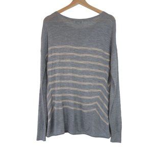 WHITE + WARREN Women's Gray & Cream Stripe Wool Blend Pullover Sweater Size M