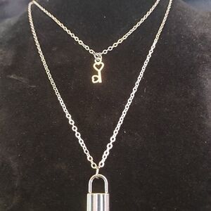 WHITE GOLD PLATED HEART KEY LOCK UNISEX PENDANT NECKLACE WITH INSPIRATIONAL CARD