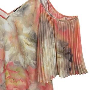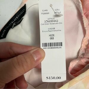 WHITE HOUSE BLACK MARKET COLD SHOULDER WATERCOLOR DRESS ECRU PEACH SZ 00 NWT