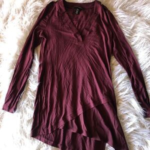 Preowned Longsleeve Layered blouse BURGANDY colored Buttons on shoulder Fast shipping