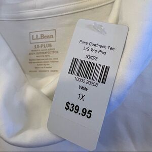 WHITE L.L.Bean Women's Pima Cotton Tee, Long-Sleeve Cowlneck