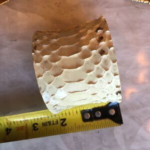 2” White python bracelet never worn part of my collection but some dark spots on it as shown which is normal for genuine snake. No longer available and beautiful.