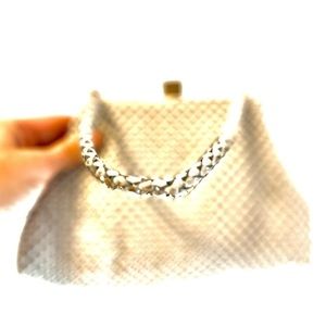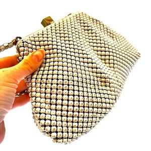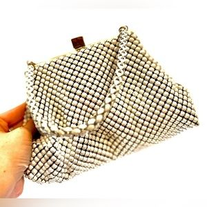 WHITING AND DAVIS CO VINTAGE PEARL HANDBAG WITH GOLDEN SNAP CLOSURE