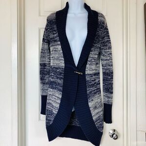 Long sleeved shawl collar long cardigan w/ One toggle closure