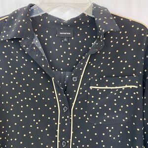WHO WHAT WEAR Black Tan Gold Dress Shirtdress Polka Dot Pajama top Dress Button