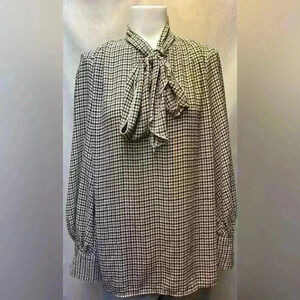 WHO WHAT WEAR Brown, Black and Tan Houndstooth long sleeve top Size Large