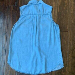 WHO WHAT WEAR Denim Sleeveless Button Down Collared Shirt Size XS
