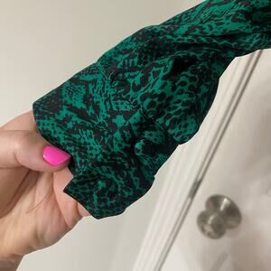 WHO WHAT WEAR • Emerald Green Python Snake Print High Mock Neck Long Sleeve Top