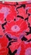 Pencil skirt, longer length, falls below the knee. Vibrant and bold floral in reds, pink and purple. Thin strip of contrasting black piping around the waist. Back vent, concealed back zipper. Waist 32" Length 26" Excellent condition.
