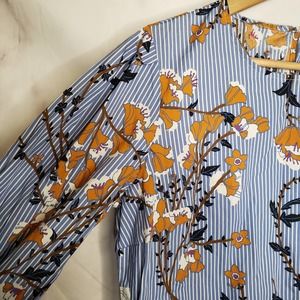 WHO WHAT WEAR Floral Stripe Long sleeve Blouse