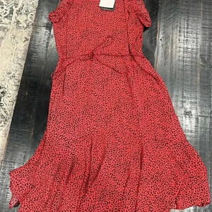 Red/Black baby leopard print dress that’s fun and flirty with scalloped upper body and ruffled bottom.