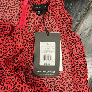 Red/Black baby leopard print dress that’s fun and flirty with scalloped upper body and ruffled bottom. Concealed zip closure in the back with tie belt waist. Fully lined NEW WITH TAGS
