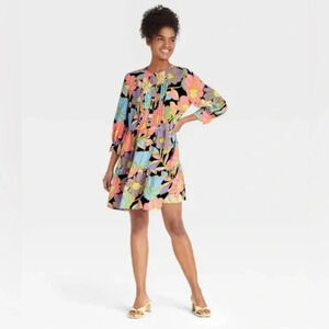 WHO WHAT WEAR NWOT Outline Floral Watercolor Print Dress