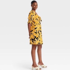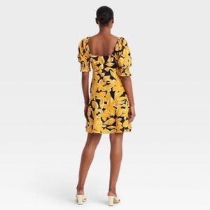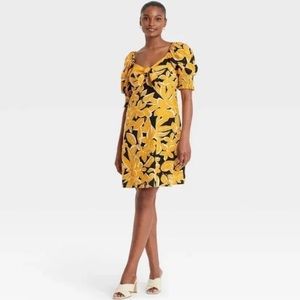 🌺…NEW WITH TAGS.....GORGEOUS…. WHO WHAT WEAR PUFF SLEEVE FLORAL DRESS. 55% linen and 45% rayon. Colors: jet black, gold and white. Features: v neck, front twist detail, invisible side zipper closure, square back, elbow sleeve, side pockets and puff sleeves. Measurements: 23" chest, 36" length and 21" waist. Fit & style Pouf sleeves have ruffles that frame the daring neckline Shirred cuffs add volume. Soft fabric woven for summer heat A-line cut adds flow over your figured and adds to the airy swing of the skirt. A work-to-weekend dress that changes its vibe with an easy accessory switch-out.