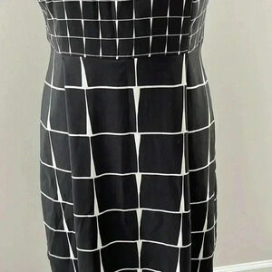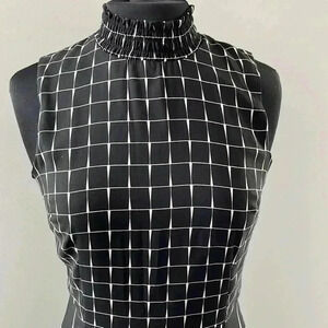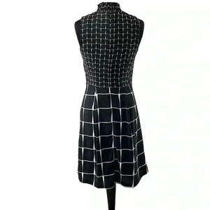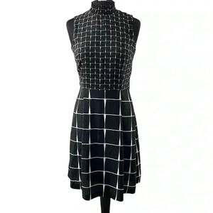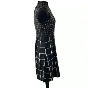 WHO WHAT WEAR Sleeveless High Neck Grid Design Lined Midi Dress Size S