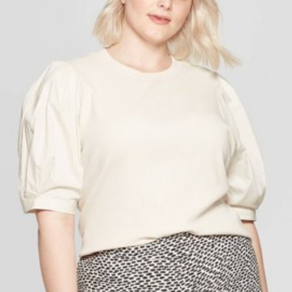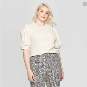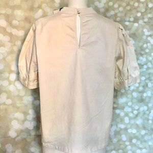 WHO WHAT WEAR beige muslin puff sleeve top XL