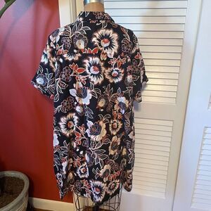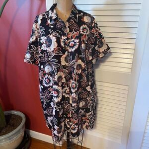 WHO WHAT WEAR | black floral pattern button up short sleeve dress XXL