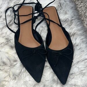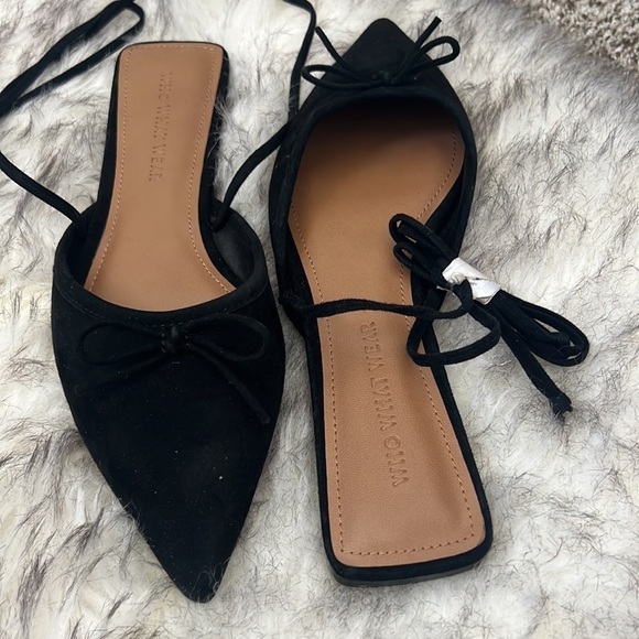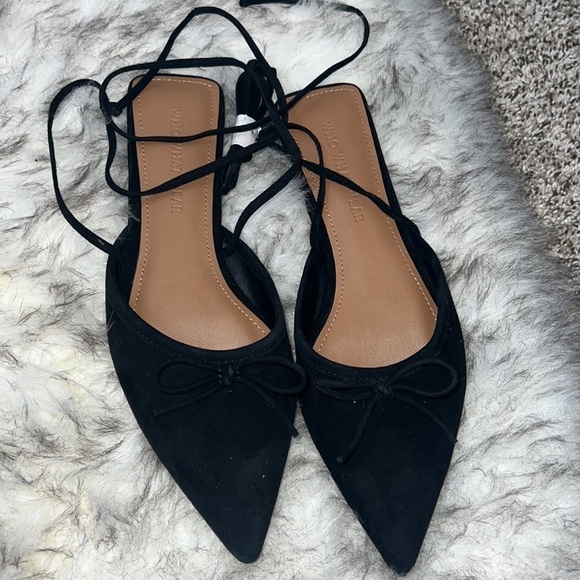 WHO WHAT WEARE Suede Black Lace Up Flats