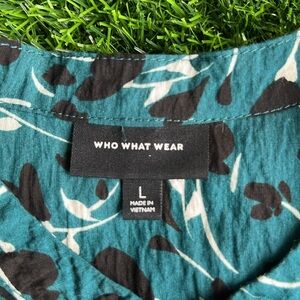 EUC Who What Wear Long sleeve Button in front 85% rayon 15% nylon Elastic around wrists Size large