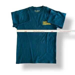 WHO.A.U tee, dark green with golden yellow print. Reads California Golden State on chest. Oversized fit, cotton/polyester blend. Tag size Small, fits like a Medium.