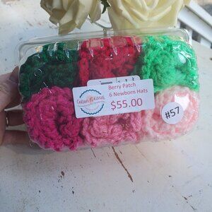 Stock your vendor space or retail store with these adorable Berry Patch Baby Hat Sets. Each Strawberry Carton contains 6 Newborn size Baby Hats.