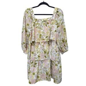 Who What Wear Pink Floral Tiered Babydoll Ruffle Mini Dress | Size Small