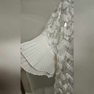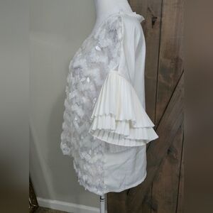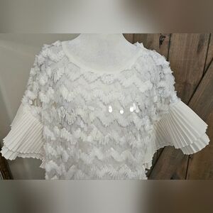 WHY DRESS Elegant SequinTextured Blouse w/Pleated Accordian Sleeves White. M NWT