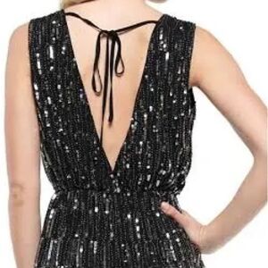 WHY DRESS Women’s/Juniors Sequined Romper in the Size Large in Black/Silver