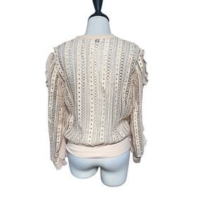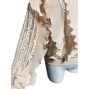 WHY Dress Long Sleeve Perforated Sheer Ruffled Blouse Size Small