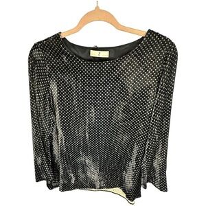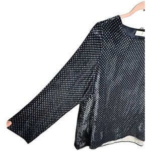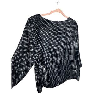 WHYCI Milano Polka Dot Velvet Silk-Blend Long Sleeve Blouse Black White Size 46